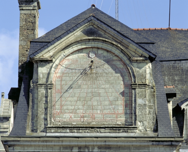 Aile sud, élévation sud, détail du cadran solaireImmatriculation