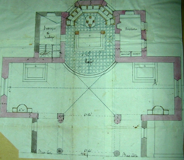 Clohars-Carnoët, église paroissiale Notre-Dame : projet de reconstruction de la partie orientale par Joseph Bigot (A.E. Quimper, 8 L, fonds Bigot), reproduction en 2002Immatriculation