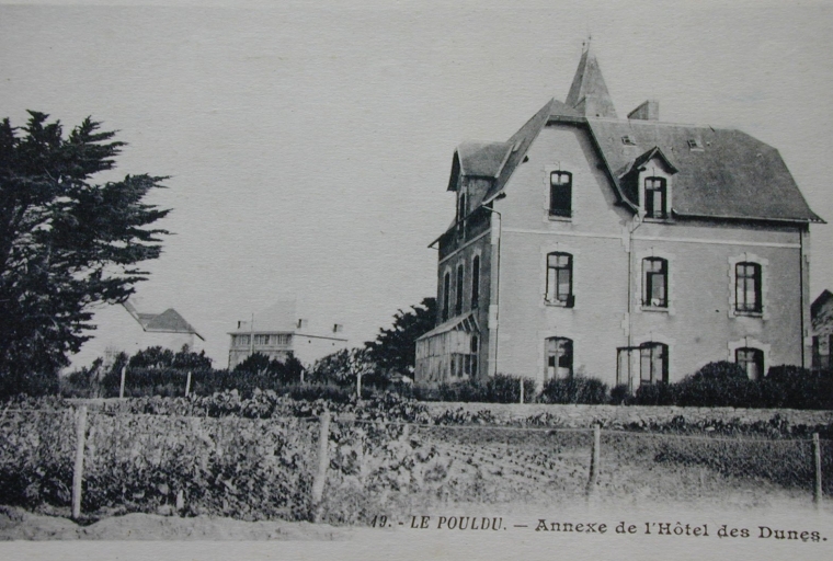 Les Grands Sables. Annexe de l'Hôtel des Dunes, élévation sud sur mer. Carte postale, vers 1900 (coll.part.)Immatriculation