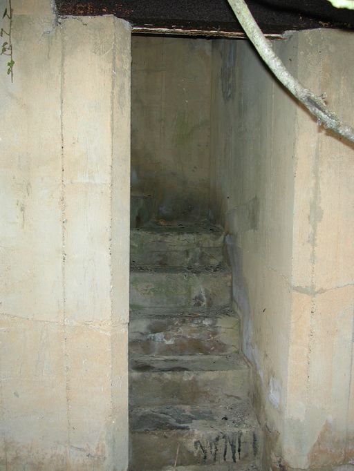 Vue de l'escalier d'accès au poste d'observation et de tir dit Tobruk-Stand situé au-dessus du bunker (état en 2002)Immatriculation