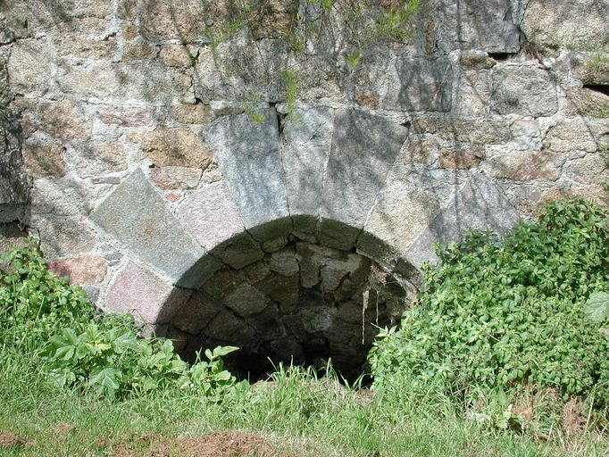 Vue de l'élévation Est : accès en arc plein cintre au foyer (état en 2002)Immatriculation