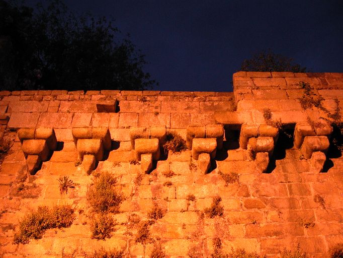 Vue de détail du parapet avec ses mâchicoulis bretons (état en 2002)Immatriculation