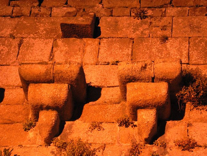 Vue de détail du parapet avec ses mâchicoulis bretons (état en 2002)Immatriculation