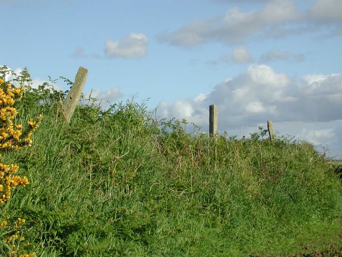 Vue des poteaux en béton servant à délimiter les champs de mines et les barbelés de l'ensemble fortifié de Tévenn BrazImmatriculation