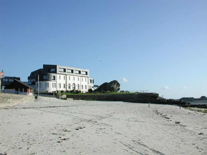 Vue de la pointe de Roc’h Kroum et du centre de thalassothérapie de Roscoff (état en 2002). Au premier plan, la grève de Roc’h KroumImmatriculation