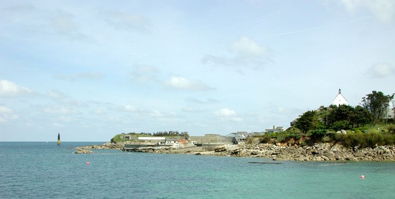 Roscoff : vue générale de la pointe de Bloscon, le fort, l'ensemble fortifié et la chapelle Sainte-BarbeImmatriculation