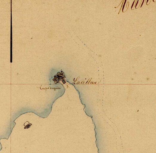 Plan de situation du corps de garde de Lavillo rocher, extrait du cadastre ancien dit Napoléonien, 1826, Archives Départementales du FinistèreImmatriculation