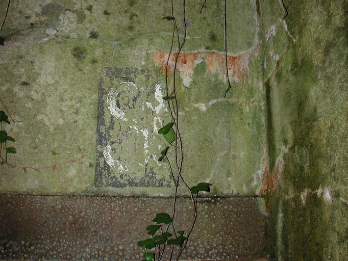 Vue du marquage "St" (abréviation de "Ständig Ausbau", fortification permanente) situé au-dessus de l'entrée (état en 2002)Immatriculation
