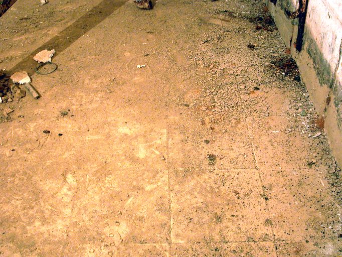 Vue de la dalle en béton du sol imitant un carrelage...Immatriculation