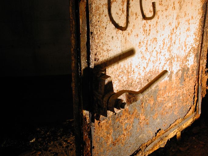 Détail du vantail inférieur de la porte blindée de type 434P01 du poste d'observation/petite pièce latéraleImmatriculation