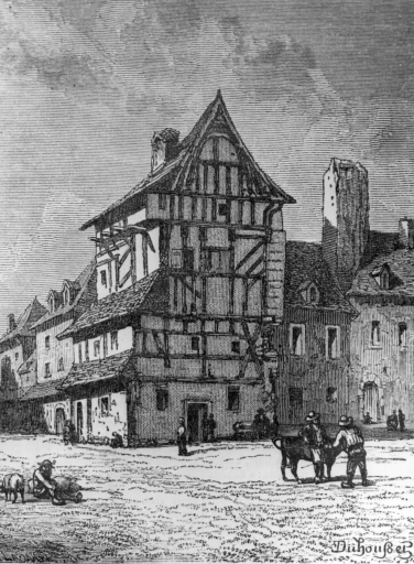 Maison en pan de bois disparue (angle place Saint-Michel, rue de l'hôpital Frémeur). Lithographie, milieu 19e siècleImmatriculation
