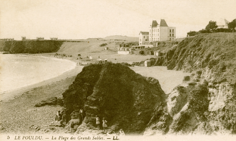 La plage des Grands Sables et la dune, vue vers l'ouest. Carte postale, vers 1900 (coll. part.)Immatriculation
