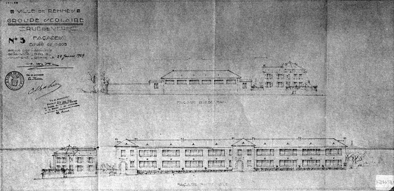Façade principale et façade rue de Vern, tirage de plan 1929 (A. C. Rennes)Immatriculation