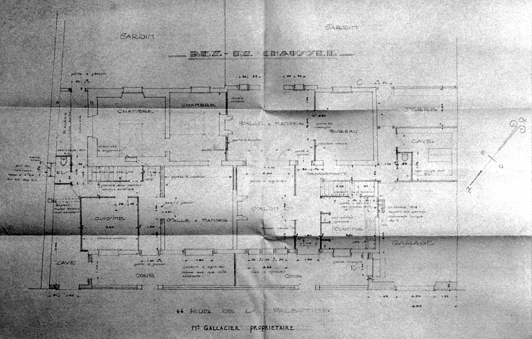 Plan du rez-de-chaussée projeté, dessin, par Jean Gallacier, 1933 (A. C. Rennes)Immatriculation