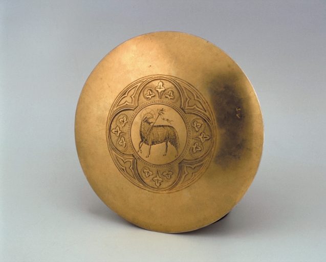 Chapelle d'orfèvrerie 2 : calice, patène, clochette, 2 burettes et leur plateau,