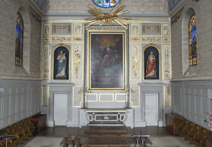 Ensembe du maître-autel : autel, retable, 3 gradins d'autel, tabernacle, 2 degrés d'autel,