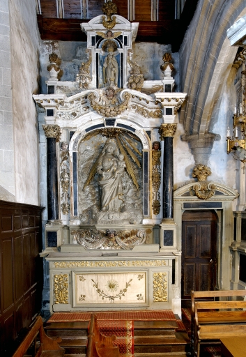 Ensemble de l'autel de la Vierge : autel, retable, gradin d'autel, 2 degrés d'autel,