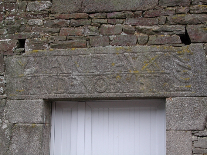 Détail : façade nord, linteau gravé 'M:LANFLAVX: / CLAUDENOBILET: / 1674'Immatriculation