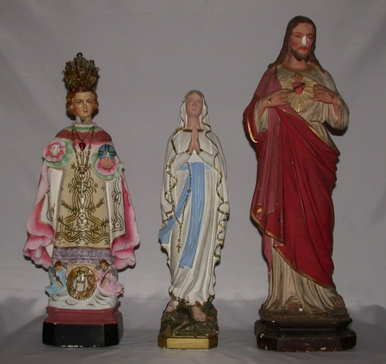 3 Statuettes : Enfant Jésus de Prague, Notre-Dame de Lourdes, Sacré CoeurImmatriculation