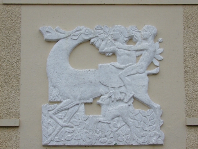 Etablissement scolaire, détail d'un bas-reliefImmatriculation