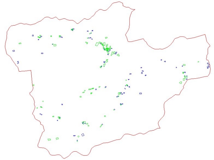 Carte des maisons et fermes recensées : en vert, les oeuvres documentéesImmatriculation