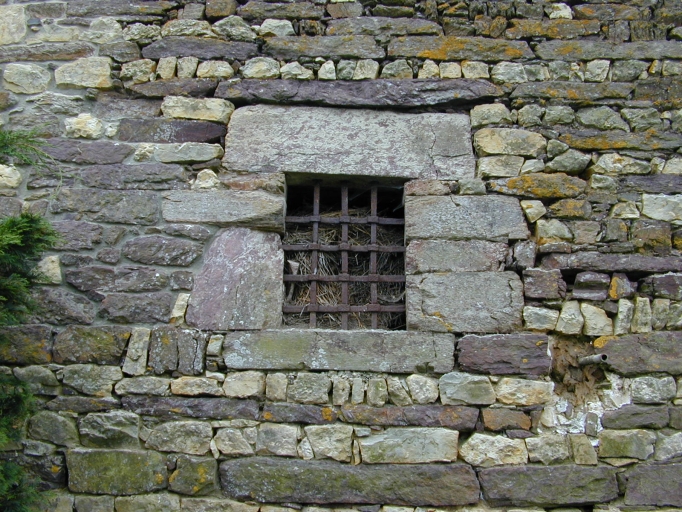 Détail du pignon est du bâtiment sud : fenêtre et sa grille de fer forgéImmatriculation