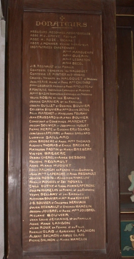 Liste des donateurs à gauche de l'autelImmatriculation
