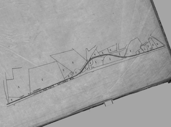 Extrait du cadastre, calque des voies de communication (début 20e siècle) ; la bifurcation du NéardImmatriculation
