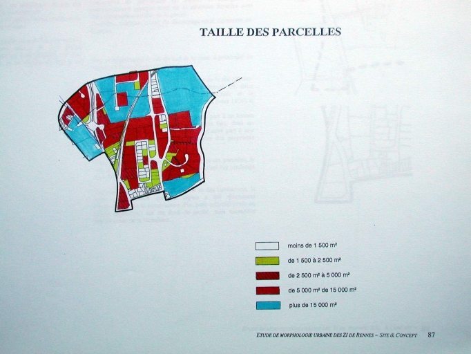 Taille des parcelles, extrait de Etude de morphologie urbaine des zones d'activités, par le cabinet Site et Concept, 1996.Immatriculation