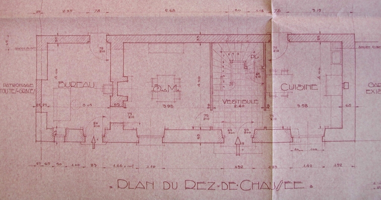 Plan du rez-de-chaussée, par Marcel Guillet, 1942 (A. C. Rennes)Immatriculation