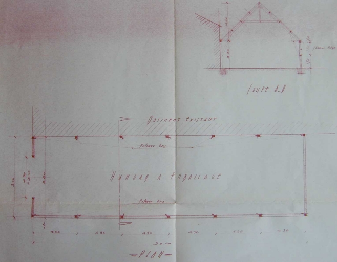 Hangar provisoire, plan et coupe, 1952 (A. C. Rennes)Immatriculation