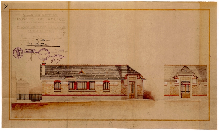 Façade sur la rue d'Echange, par Emmanuel Le Ray, 1926 (A. C. Rennes ; 2 Fi 6251)Immatriculation