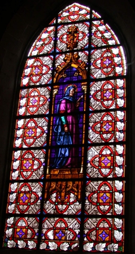 Ensemble de la verrière décorative (baie 00) et de 9 verrières à personnages des baies 1 à 8 : Immaculée Conception, Sainte Anne, Saint François d'Assise, Saint Sulpice, Saint Pierre, Saint Joseph, Saint Jean-Baptiste, Saint Louis,