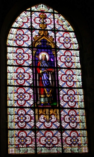 Ensemble de la verrière décorative (baie 00) et de 9 verrières à personnages des baies 1 à 8 : Immaculée Conception, Sainte Anne, Saint François d'Assise, Saint Sulpice, Saint Pierre, Saint Joseph, Saint Jean-Baptiste, Saint Louis,