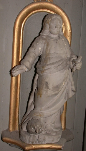 Deux gradins d'autel et exposition à miroirs avec 4 statuettes : Evangélistes,