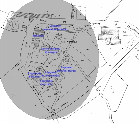 Moulin à blé, puis usine métallurgique dite forges de Martigné, actuellement minoterie dite les Grands Moulins, la Forge (Martigné-Ferchaud),