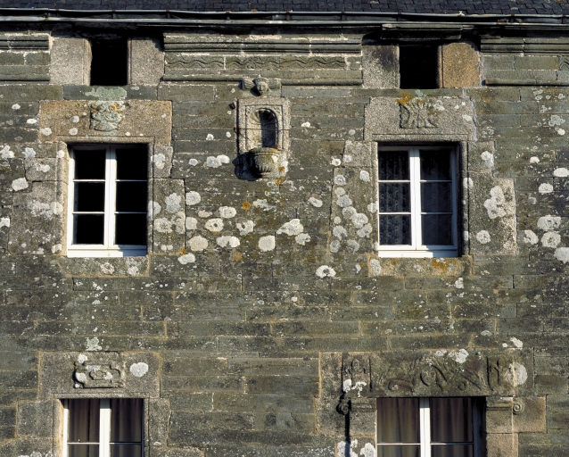 Détail des linteaux sculptés et de la niche du 1er étageImmatriculation