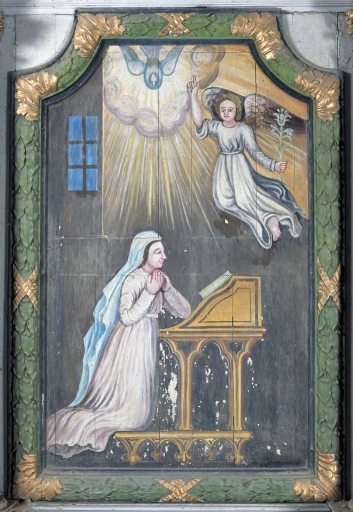 Tableau : Annonciation, peint sur la contretable.Immatriculation