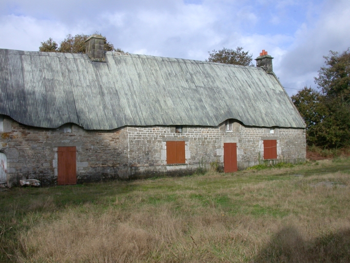Alignement repéré comprenant un logis-étable 17e siècle et un logis à deux pièces daté 1863. Vue sud du logis 1863. 1987 XB 73, 74, 75Immatriculation
