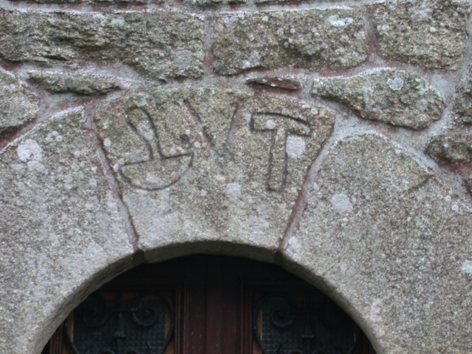 Détail de l'arc de la porte orné d'outils professionnels.Immatriculation