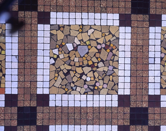 Détail du sol de mosaïque de la salle des guichetsImmatriculation