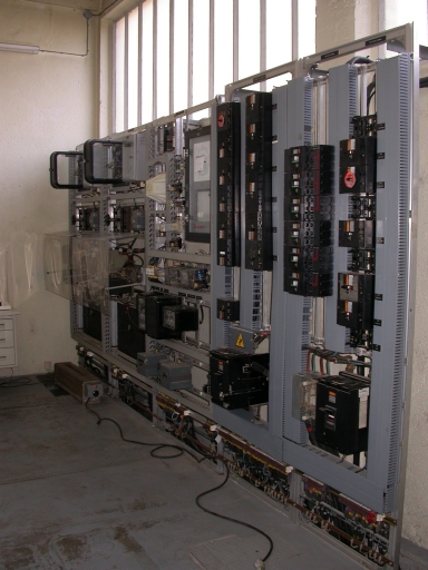Vue générale du tableau électrique situé au rez-de-chaussée de la salle des machines (pièce accolée à celle des alternateurs).Immatriculation