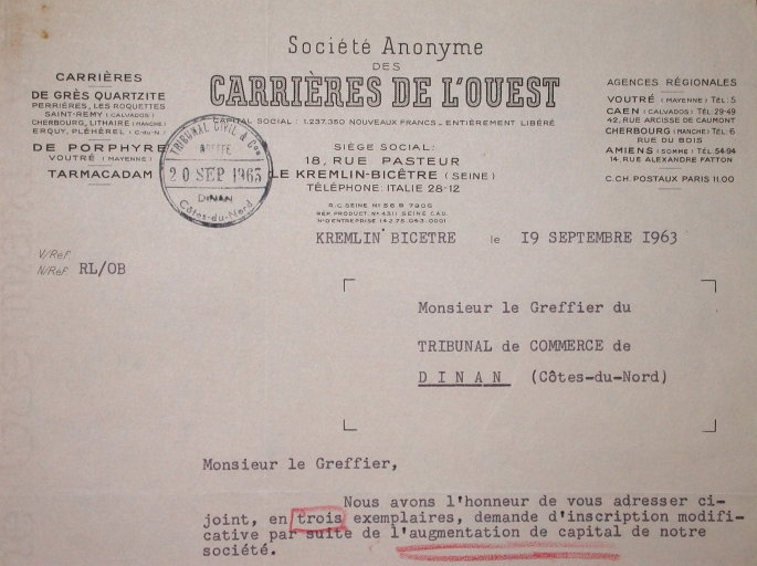 En-tête de papier daté de 1963.Immatriculation