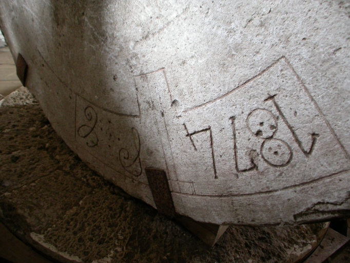 Inscription sur la paire de meules démontée : 1874 et initiales G. C.Immatriculation