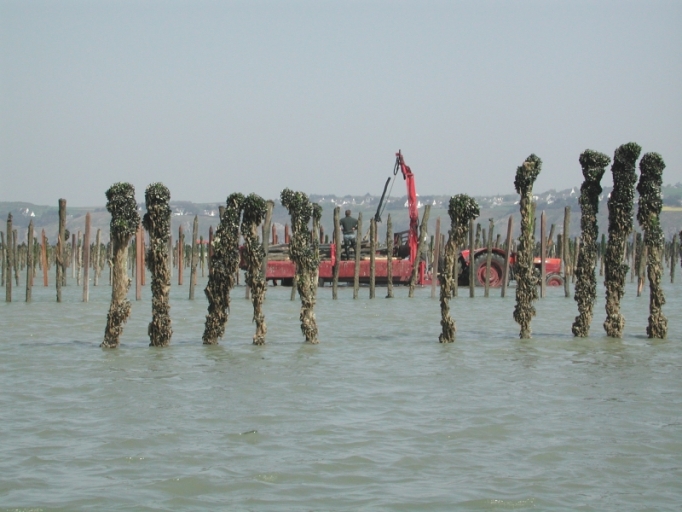 Vue générale des bouchots à moules sur les grèves de Planguenoual à MorieuxImmatriculation
