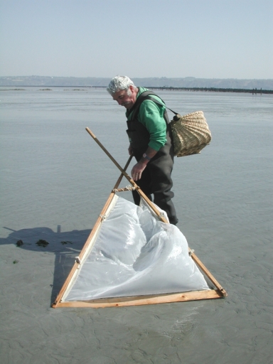 Pêcheur à pied équipé d'un havenet à pouillen (version avec une planche)Immatriculation