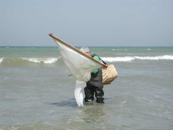 Pêcheur relevant la poche de son havenet à pouillenImmatriculation