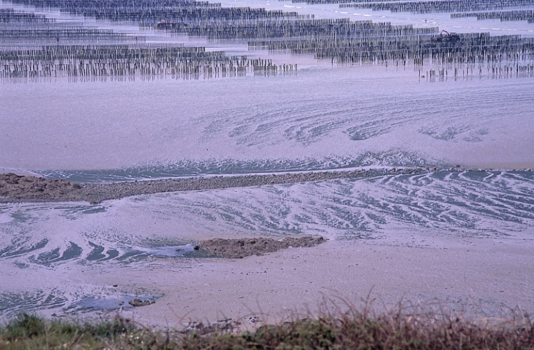 Vestiges d'e l'ancienne pêcherie de Roemel en 1985 (la Cotentin)Immatriculation