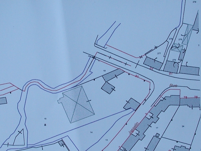 Extrait du cadastre moderne (section AD) : circuit de l'eau sur la commune et pont en limite de Langueux (D 712)Immatriculation