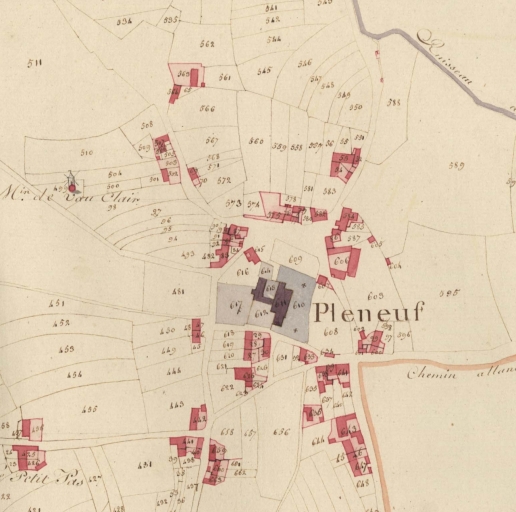 Pléneuf-Val-André, le bourg. Extrait des plans cadastraux parcellaires de 1811 (AD 22)Immatriculation